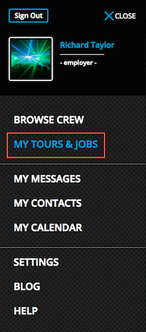 Return to the My Tours & Jobs screen anytime to view or edit your active postings.